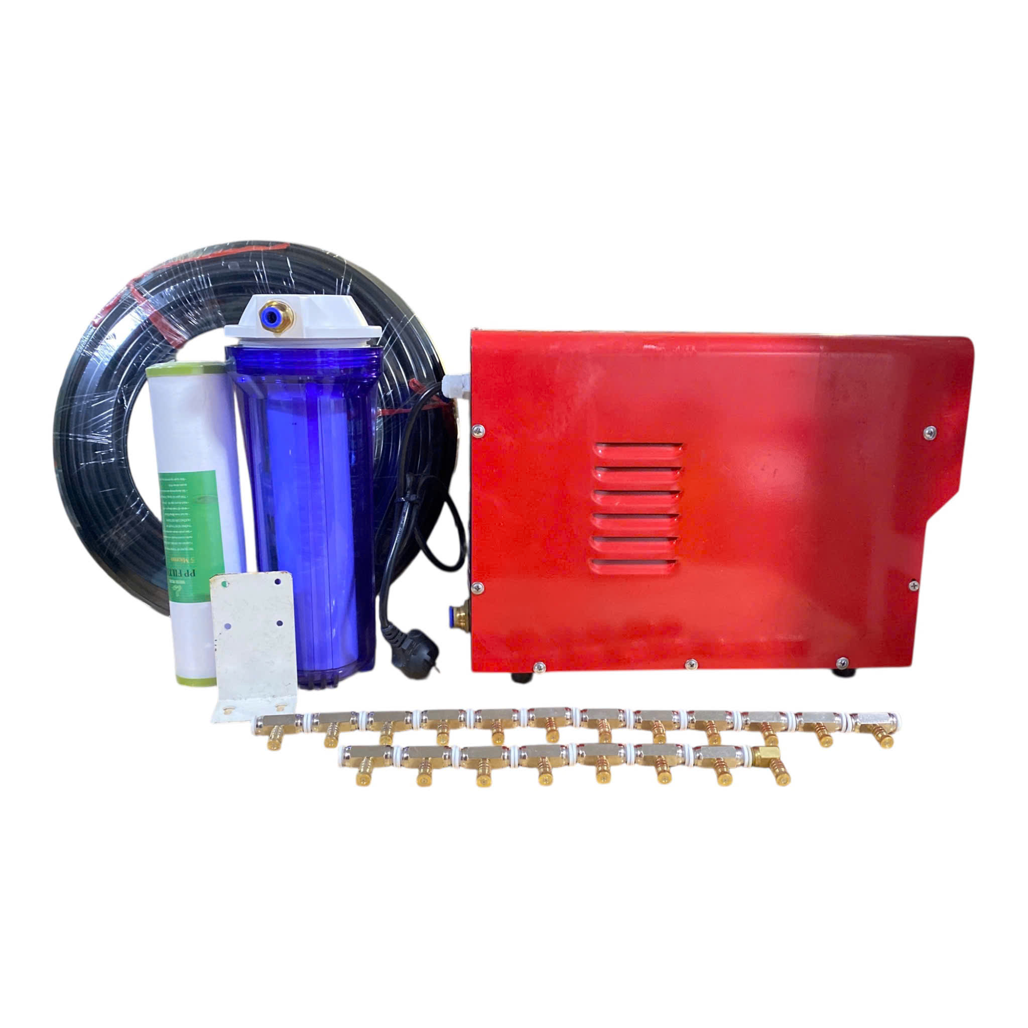 Bộ máy phun sương FOG-6150 công nghệ Taiwan, gồm 150 béc phun, dây PE 200 met, bộ lọc và phụ kiện lắp đặt sẵn.